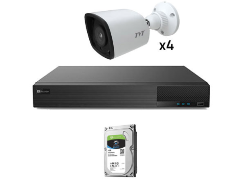 Kit CCTV 4 cámaras Bullet Preconfigurado TVT 1080p